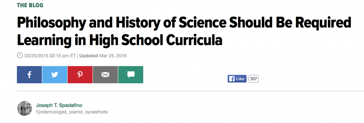 Adam Shapiro: I think it’s important to recognize that Spadafino’s intention seems to be good. I don’t doubt that he is genuinely interested in promoting understanding of biological evolution. In one of his other HuffPo pieces, he justifies a call for more “Philosophy and History of Science” in K–12 schools by pointing to real problems (like epidemics exacerbated by anti-vaccinationism) that he thinks his prescription could address. Wanting to address those concerns is laudable, but as we’ve all noted, he just doesn’t seem to know what’s actually going on in the classroom. For example, curricula based on the Next Generation Science Standards does some of the things he proposes. And other aspects of his proposals seem not to understand how curricula is implemented at state and local levels.