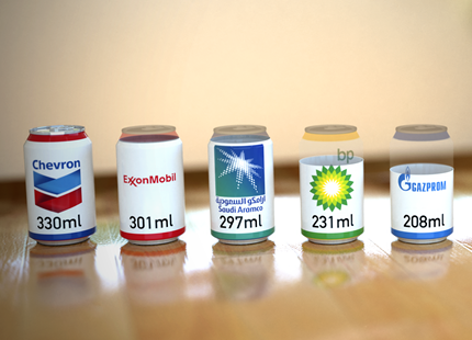 But if the question is "which corporate entity wins the dubious distinction of being the largest contributor of carbon emissions to the atmosphere?" we might struggle more. Peabody Coal? No, more probably ExxonMobil. But what about Royal Dutch Shell, which has the highest current revenue? And then there's BP, no longer bothering trying to rebrand itself as Beyond Petroleum. The actual winner? (Drum roll, please.)