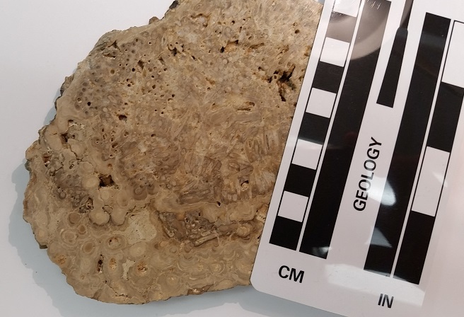 Last Friday I showed you a section of a fossil that stumped not only me, but an intern working in the museum, too. Here, take a look at the whole thing with a scale bar; see if that helps.
