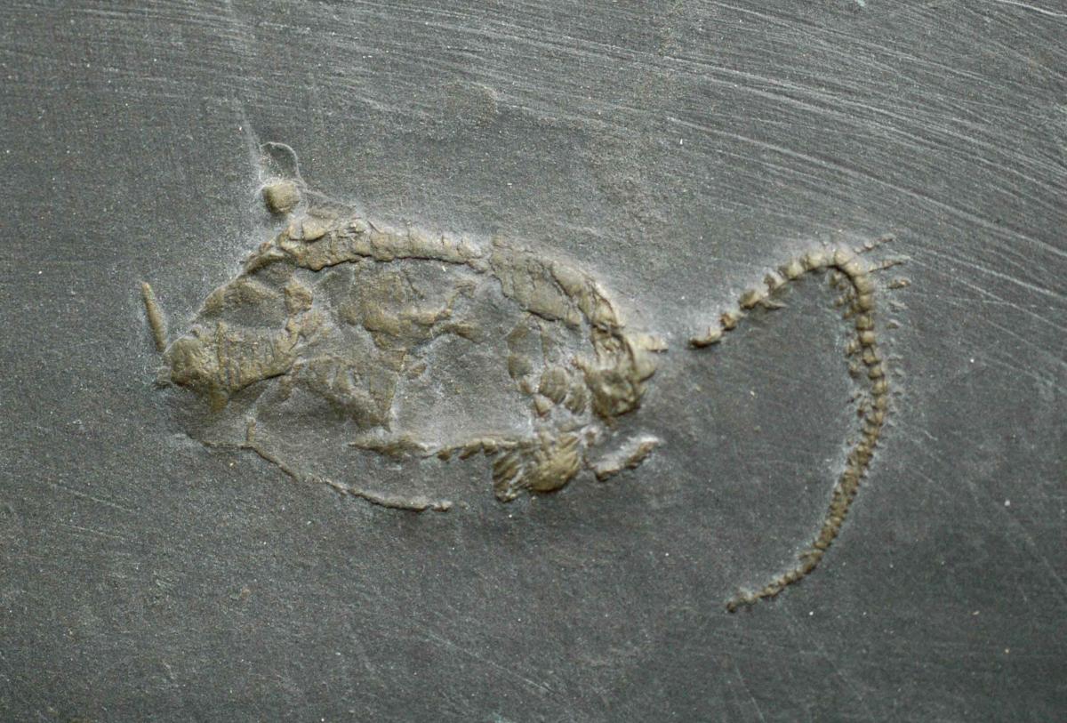 extra cool because they have been pyritized—which, sadly, doesn’t mean they got hooks and eye patches, but it does mean that the organic material was replaced with the mineral pyrite. Pyritization is rare in the fossil record, and occurs when sulfur and iron are present in an anoxic (no-oxygen) environment. Unfortunately, the fool’s golden color of pyrite isn’t as obvious in this specimen as it is in some others, such as this echinoderm from the same locality.