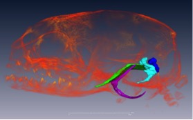 While there is no way to glean information about cellular or genetic changes from fossils, we can use extant organisms as proxies. Since Monodelphis undergos the same transition observed in the fossil record, we can infer the same cellular and genetic changes that they exhibit may have also been responsible for the rearrangements in ancestral organisms. By slicing frozen sections from the middle ear of Monodelphis and looking for different molecular markers, we have documented how a process called apoptosis, a form of programmed cell death, works to free the ear bones from jaw cartilage. Our lab has gone even further, using precision lasers to remove tissue samples at the exact point where the cartilage breakdown begins. We then sequence the RNA to identify differential gene expression (up-regulation or down-regulation of certain genes) before, during, and after separation from the jaw.