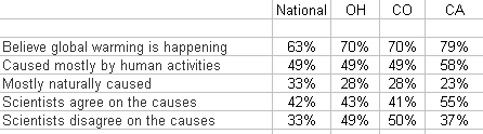 The latest in a salvo of polls from our friend Anthony Leiserowitz and his colleagues at the Yale Center for Climate Change Communications, this study follows on one in Colorado (pre-flooding), and California. (One of my colleagues is looking forward to the Climate Change in the Northern Marianan Mind, but evidently there are only three more of this series planned: Texas, Columbus, OH and San Francisco, CA.)