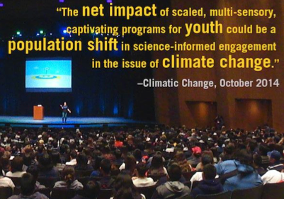 The assemblies, specifically calibrated with high school students in mind, are the work of ACE, the Alliance for Climate Education. The just released study in the prestigious journal Climatic Change details how ACE's hybrid of education-entertainment successfully informs students about the reality and challenges of climate change, and inspires them to think about and act upon its implications in their everyday lives.