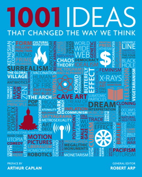 I don’t spend all of my time working at NCSE. Once in a while, I moonlight. The fruits of a moonlighting stint recently arrived: a chunky volume entitled 1001 Ideas that Changed the Way We Think (2013), edited by Robert Arp. In his introduction, Arp explains that the book contains “1,001 of the most important ideas that have ever been imagined, conceived, and articulated throughout the course of recorded history. These are 1,001 ways that changed the way we think.” Each idea is described in the space of about 250 words apiece, often ornamented with a particularly apropos quote or a marvelous illustration. They’re arranged chronologically, by their inventor or most prominent exponent when known, from “Human Control of Fire” (circa 1,600,000 BCE and attributed to Homo erectus) all the way to “Not-Junk DNA” (circa 2012 and attributed to ENCODE: don’t tell Dan Graur, because he’ll be livid).