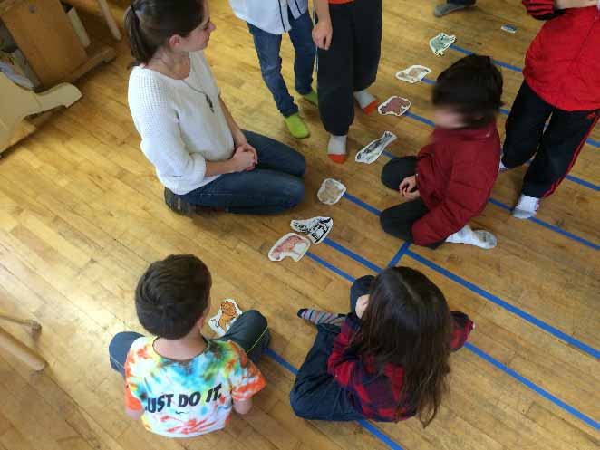 In December Mary joined us as we marked the end of one year and the beginning of another with the study of deep time and evolution. Through the use of pictures and a large model of the evolutionary tree of Mammalia, students worked in small groups to arrange the animals on their tree. Another group of budding scientists arranged pictures of the different steps of the evolution of whales from the sea to land and back again. This was a thoughtful and concrete presentation that created an effective space for the students to visualize evolution.