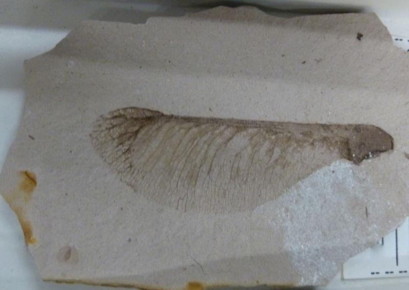 This week’s fossil may be way too easy to identify. It looks identical to something we see today—a winged samara (that is a fruit) from some…mystery…tree. The shape of the samara today helps the wind carry the seeds further, which one could guess was the purpose of this fossil back in the day as well. Dating from the Miocene, and found in what today is Nevada, can you tell me the genus AND species of this fossil?