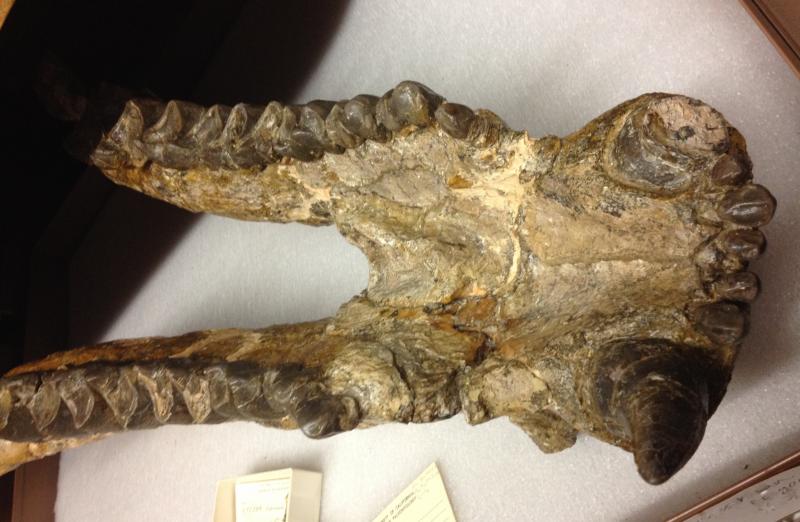 This week's Fossil Friday was a bit of a shocker to me. Looking at the enormous jaw and terrifying teeth, I thought for sure this was some sort of gnarly reptile that would tear you limb from limb, given half a chance.