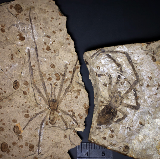 This week on Fossil Friday, we're unveiling a celebrity fossil! Well, maybe not a celebrity, but it sure has been making news lately. These two spiders (a lady and gentleman) were originally misidentified as another species. What was that species, and what is the new identification? And can you also identify the fossil's geologic period and location?