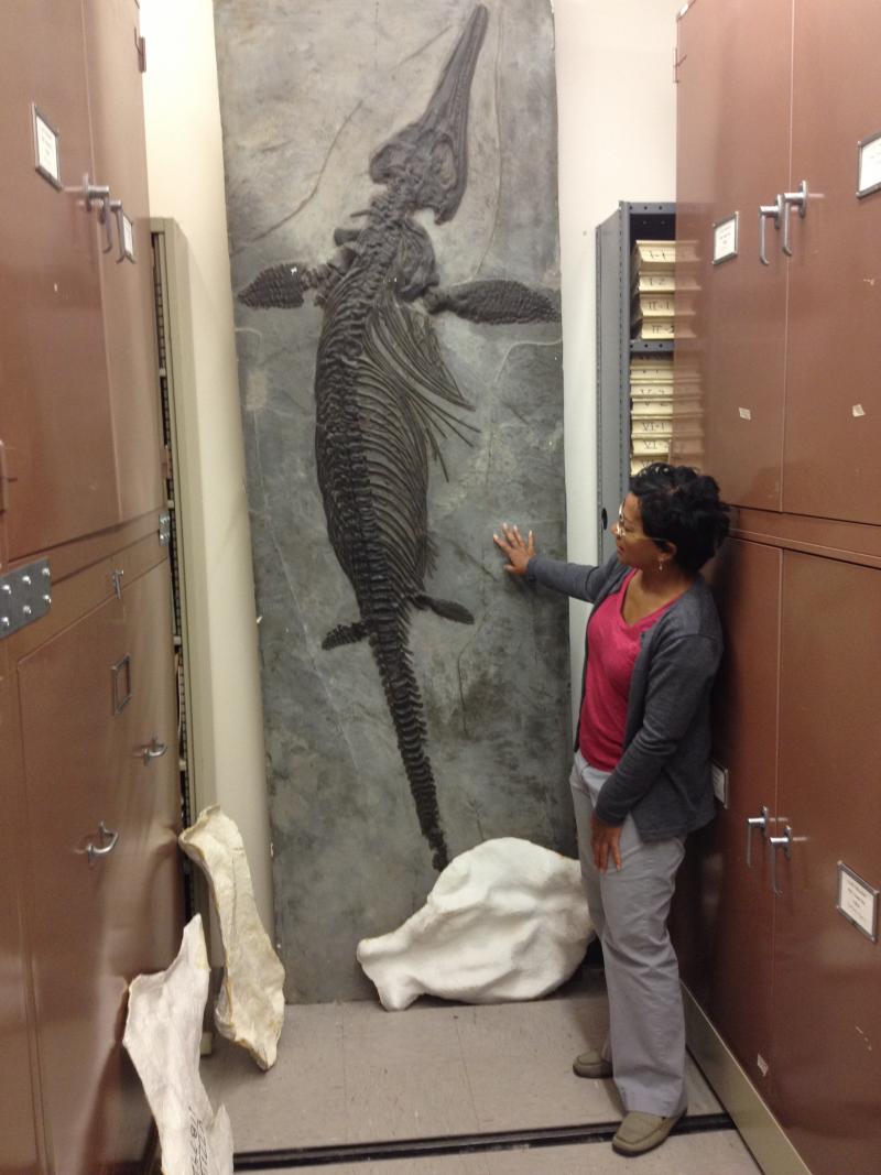 This week's Fossil Friday, being modeled here by UCMP Director of Outreach Lisa White, may be a little too easy for some of you.