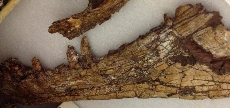 The first requested fossil is coming from GrizzlyD, who asked for “some Mesozoic beasties.” Well. that gave me a lot of latitude, because the Mesozoic is huge! So I decided to start with a crowd-pleaser—a dino from the Jurassic. It’s obviously a lower jaw—but whose? And where was this fossil found?