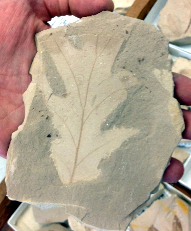 Now that spring has arrived, I thought I'd share a leaf that might seem a little too familiar! Well it should—it's from a genus that is found all over North America today. Its closest living species is still found in the Southeast. Can you tell me the modern species, as well as this ancient one that dates back to Miocene? Their names are almost the same!