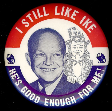Everyone remembers Ike, right? The 34th President of the United States who, after serving in the First World War, went on to become a general and then the Supreme Allied Commander, overseeing the liberation of Europe in WWII. After the war he served as Military Governor in Germany and Army Chief of Staff, and then as NATO commander. He was briefly President of Columbia University, and then ran in 1952 for president.