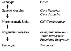 Genotype to Phenotype: Figure 8 from B. Hall (2003) Genotype to Phenotype: Figure 8 from B. Hall (2003) "Unlocking the Black Box between Genotype and Phenotype: Cell Condensations as Morphogenetic (modular) Units." Biology and Philosophy, 18, p. 219