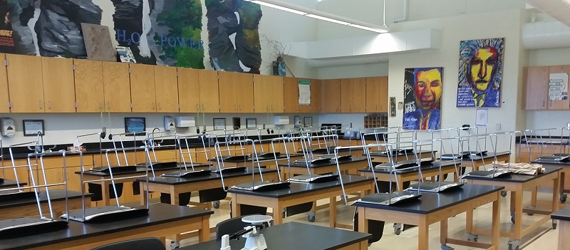 And that’s when things got even more interesting. One of the teachers, who had absolutely no money in the budget for equipment, supplies, or reagents, taught in a newly renovated classroom with a full complement of instructional technology. The lab had chemical-resistant benches and smartboards, but the forty kids in her biology class had to take turns using two thermometers, which were also shared with the physics and chemistry classes. Check out this lovely modern classroom below, which looks really great and has no money at all for basic equipment.