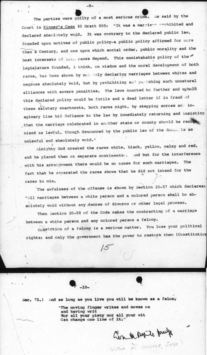 Indictment against Richard Loving and Mildred Jeter for the felony of marrying across racial lines. Click to embiggen. Via Library of Virginia.Fifty years ago, racial segregation of marriage was seen as a religious matter, too. The judge who convicted Richard Loving and Mildred Jeter of the felony of miscegenation, a conviction which led to the aptly-named decision Loving v. Virginia, ruled not just based on the law, but on his creationist interpretation of the Bible: