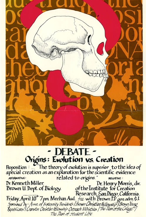 On April 10, 1981, at Brown University, Kenneth R. Miller of Brown University and Henry M. Morris of the Institute for Creation Research debated whether “the theory of evolution is superior to the theory of special creation as an explanation for all the scientific evidence related to origins.”