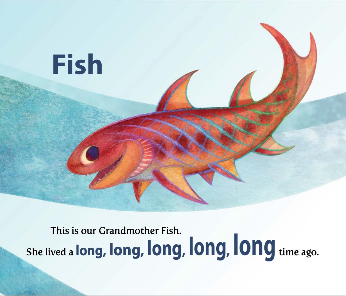 follow. It’s special because it’s our story. When a parent holds their child in their lap and reads this book, the book is about the two of them—parent and child. The parent cuddles with the child like Grandmother Mammal and tells a story like Grandmother Human. The element of self-reference really helps the child feel like part of the story. During a read-through, we caught on tape the moment when a girl realized that the story was about her. She realized that she, too, evolved from Grandmother Fish, and she was almost speechless with wonder. It’s a delightful scene, and it’s hard to imagine another book that could inspire a child like that. There’s a reason I kept working on this book for fifteen years. It’s special.