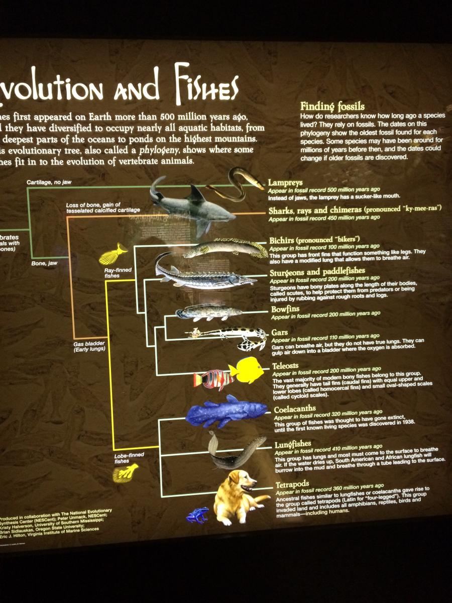 Will every visitor absorb the details? Will they come away with a subtle appreciation of the significance of the unresolved coelacanth-lungfish-tetrapod polytomy, or even a new-found understanding that “fish” is a paraphyletic group? Of course not! But that doesn’t really matter—what matters is that the correct information is there, so that those who are interested can learn more, and those who want to take only a quick glance won’t come away with a misconception.