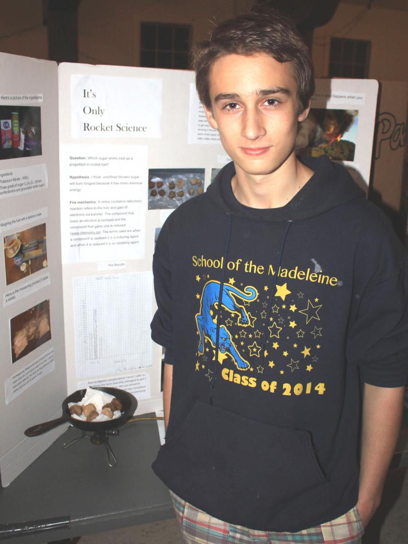 An exciting addition to the Madeleine science curriculum was teacher Theresa Parini's institution of a competitive science fair. She assigns her students a strict rubric for the conception, execution, and presentation of science experiments, helping them reach a higher plane of the critical thinking. I was stunned with the diversity of projects and quality of experiments presented by the students this year in the parish hall. They ranged from projects at the beginner level to those that exhibited considerable sophistication in planning and execution.