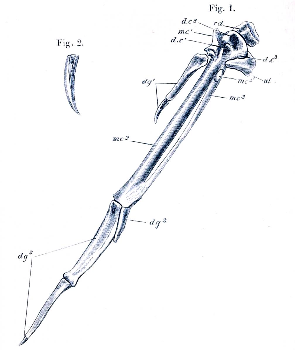O’Callaghan alludes to, but does not name, the principle called “Dollo’s Law,” for the Belgian paleontologist Louis Dollo. Dollo’s Law essentially says that if a trait is lost along a lineage, it isn’t coming back, at least not in the exact same form. If snakes or whales evolve hindlimbs in the future, for example, they wouldn’t be made up of the same femur-tibia/fibula-tarsals structures that their early ancestors lost. The research by Alexander Vargas of the University of Chile has challenged that notion, and that’s where this click-baity headline comes from. (For a critique of Dollo’s law and some further musings on the topic of bird wrists, see PZ Meyers’ blog.)