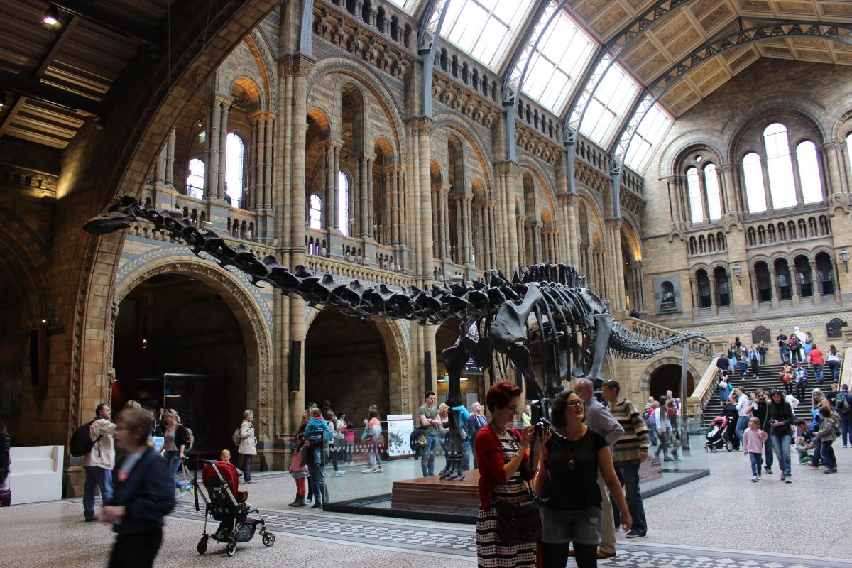 Let me start this post with this declaration: the Natural History Museum in Knightbridge, London, is awesome. Where else does a marble statue of Darwin sit serenely atop a grand staircase overlooking “Dippy,” a magnificent Diplodocus? Nowhere. (I bet that NHM is glad that it’s a Diplodocus and not an Apatosaur/Brontosaur—they dodged a nomeclatural bullet there!) My visit to the museum (and I only had time to visit about one-third of the displays!) made me downright giddy many times. From the wall of stunning marine reptiles (not dinosaurs, thank you!), most found along England’s south coast, to the life-size blue whale that literally and figuratively dwarfs all around it, the place is a gem.