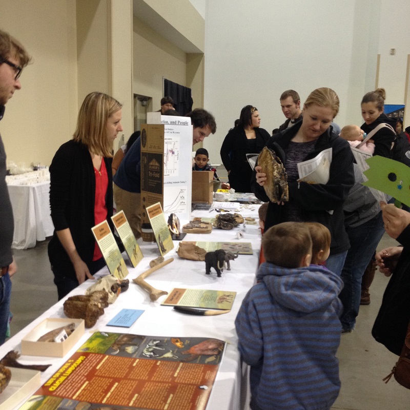 Partnering with Tiffany Adrain, manager of the University of Iowa’s Paleontology Repository, we brought an exhibit on ice age animals and climate change to over a thousand people at Coralville Iowa’s annual Winterfest.