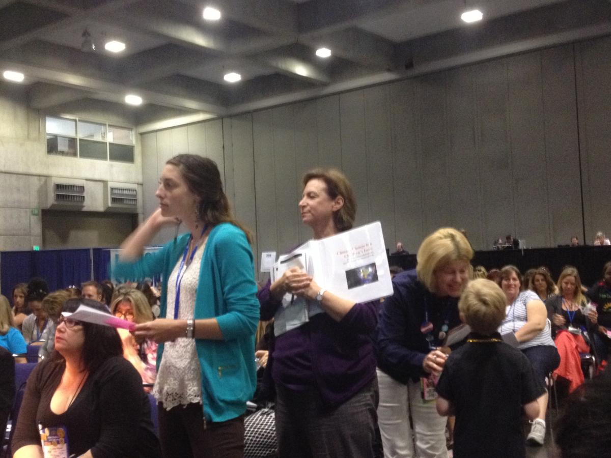 This slogan drew me to Sacramento last week for the California PTA (CAPTA) annual meeting. Now, if you are anything like me, you probably think of bake sales when you think of the PTA. So you can imagine that I was a little shocked when I walked into the enormous convention hall, packed with 2,000+ attendees. The room had three flashing Jumbotrons, speakers blasting music, and a surging and shouting audience of parents and teachers. It was more like a political convention than a bake sale—in fact, there were signs at the doorway that read “no food allowed”!