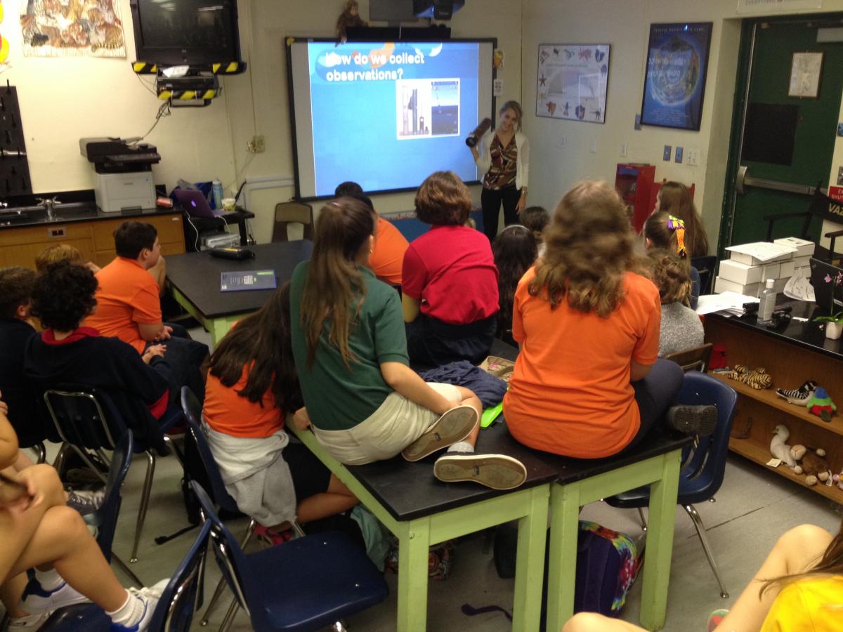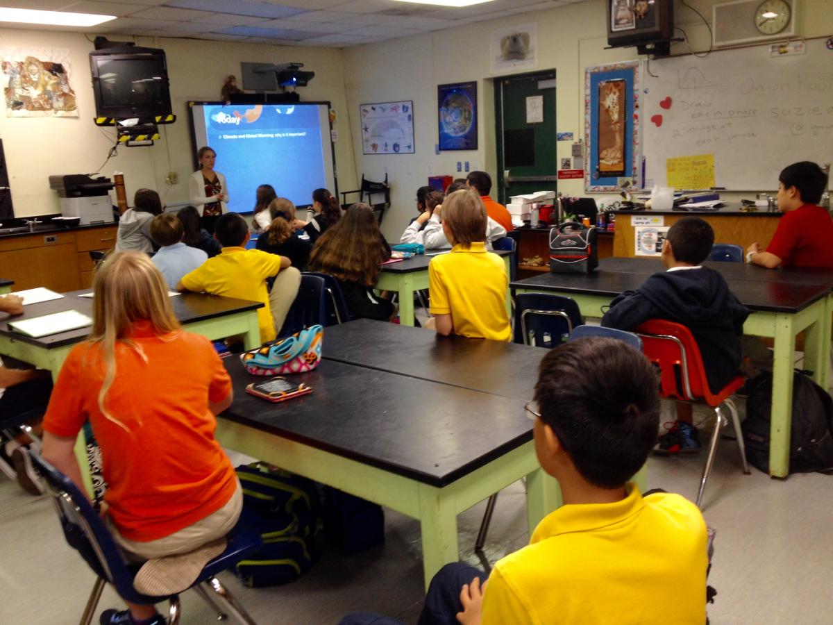 I believe that it should be the goal of every science teacher to make the concepts taught in class come alive with real-world applications. Therefore, it was no surprise that after 25 years of seeing the proverbial mad scientist in thousands of sketches, I was drawn to NCSE’s Scientist in the Classroom Program. After years of seeking out local scientists on my own, I could not believe that NCSE’s simple and accessible program could make it so easy for me. Within days of signing up, I was contacted by an NCSE staffer who let me know she was working hard to find a local scientist for my class. Sure enough, I was contacted days later by Eleanor Middlemas, an NSF Graduate Research Fellow in the Department of Meteorology and Physical Oceanography at the Rosenstiel School of Marine and Atmospheric Science of the University of Miami.