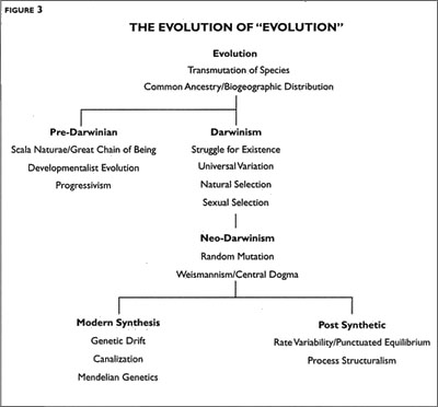 Let us now look at the surviving meanings of evolution in order of increasing exactness, along with the names of some of the scientists with whom the ideas are associated (Bowler 1983, 1984; Mayr 1982; Mayr and Provine 1980; Ruse 1979/1999; see Figure 3).