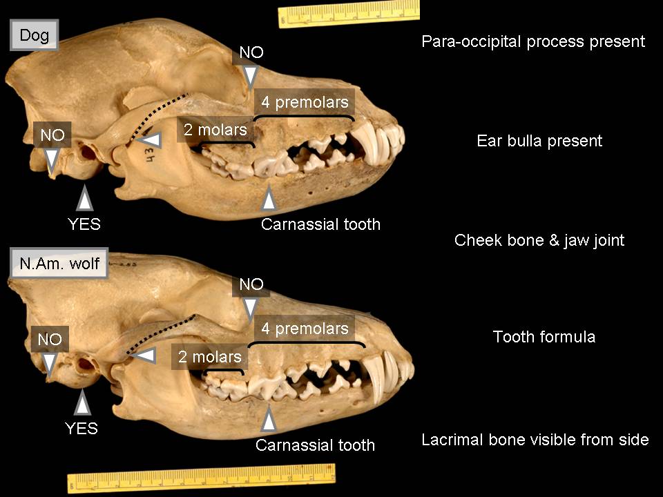 | Credits: Dog/wolf/thylacine skulls modified from Pandas Figure 5-2, p. 117. ©1993 by Foundation for Thought and Ethics, Richardson, TX 75083-0721 |