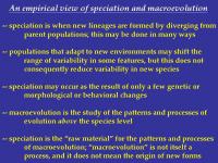 A. Yes. I would just like to clarify what we mean when we talk about speciation, macroevolution, which really differs from how it's treated in texts like Pandas. We call speciation what happens when new lineages are formed. They diverge from parent populations. That is, from old species new species bud off, if you will.