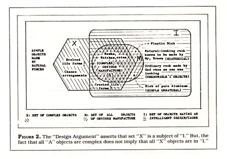 (a) It is not clear that class "I" objects (of which "A" objects are a subset) include DNA. A distinction is to be made between the capabilities of primitive natural forces and the effects of what we call "intelligent cause." This distinction cannot be made without fully understanding the limits of nature. (Wind, ice, and rain may carve many patterns on a mountain, but it is unlikely that the faces of Mount Rushmore would be so produced. Therefore, those faces must have an intelligent origin. On the other hand, if watches were produced within the sands of certain beaches, then we would be hard pressed to say whether or not an unknown watch had an intelligent origin.) Without knowing its history, we cannot place an object in class "I" without first showing that its structure is beyond the range of natural forces. (There is some uncertainty, for example, in assigning an intelligent origin to some of the most primitive "stone tools.") Class "A" objects have all passed the test, but DNA is not a member of that class. The fact that the information content of DNA may be mathematically similar to class "A" objects is irrelevant. We may, however, discuss a class of objects which are defined by complex information content-say class "X." But it does not follow that class "X" is a subset of class "I." (Class "X" is clearly not a subset of class "A," though the reverse is true.) Can nature produce DNA? The only hope of settling such arguments is to dig into the scientific details. I see no easy philosophical shortcut.
