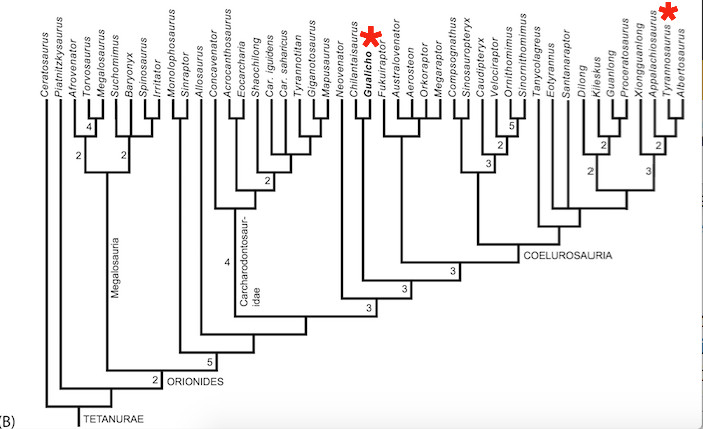 Okay, so two species of predatory dinosaurs each independently evolved reduced arms. That is an intriguing finding because it seems to suggest that there was some advantage associated with the trait. Notice that I didn’t say that the arms themselves must have been advantageous, only that there is likely to have been at least an advantage associated with it. So I stand by my earlier warning that asking what the little arms are “for” is not necessarily the right question to ask—rather, we should be asking what advantage did they confer, or even what non-arm-related advantage might have resulted in tiny arms.