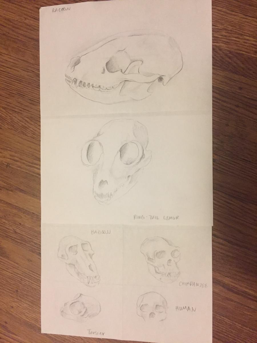 In the 2016–2017 school year, Caterina Meyers of Drew School in San Francisco borrowed the materials to use with her science class. She kindly supplied these pictures of students hard at work with our skulls and their laptops (and their skulls, too, I guess). You can see how engaged the students are with this opportunity to study the fossil evidence for human evolution.